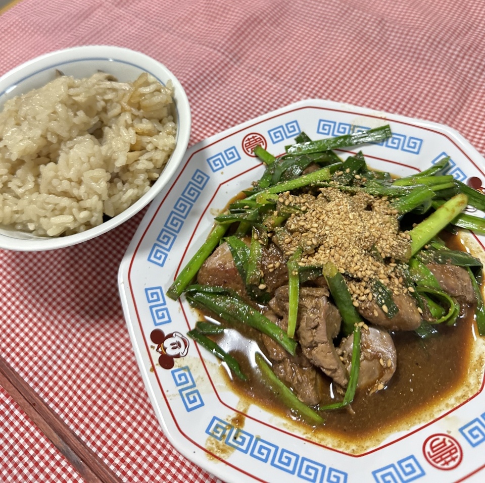 きのこご飯とレバニラ炒め