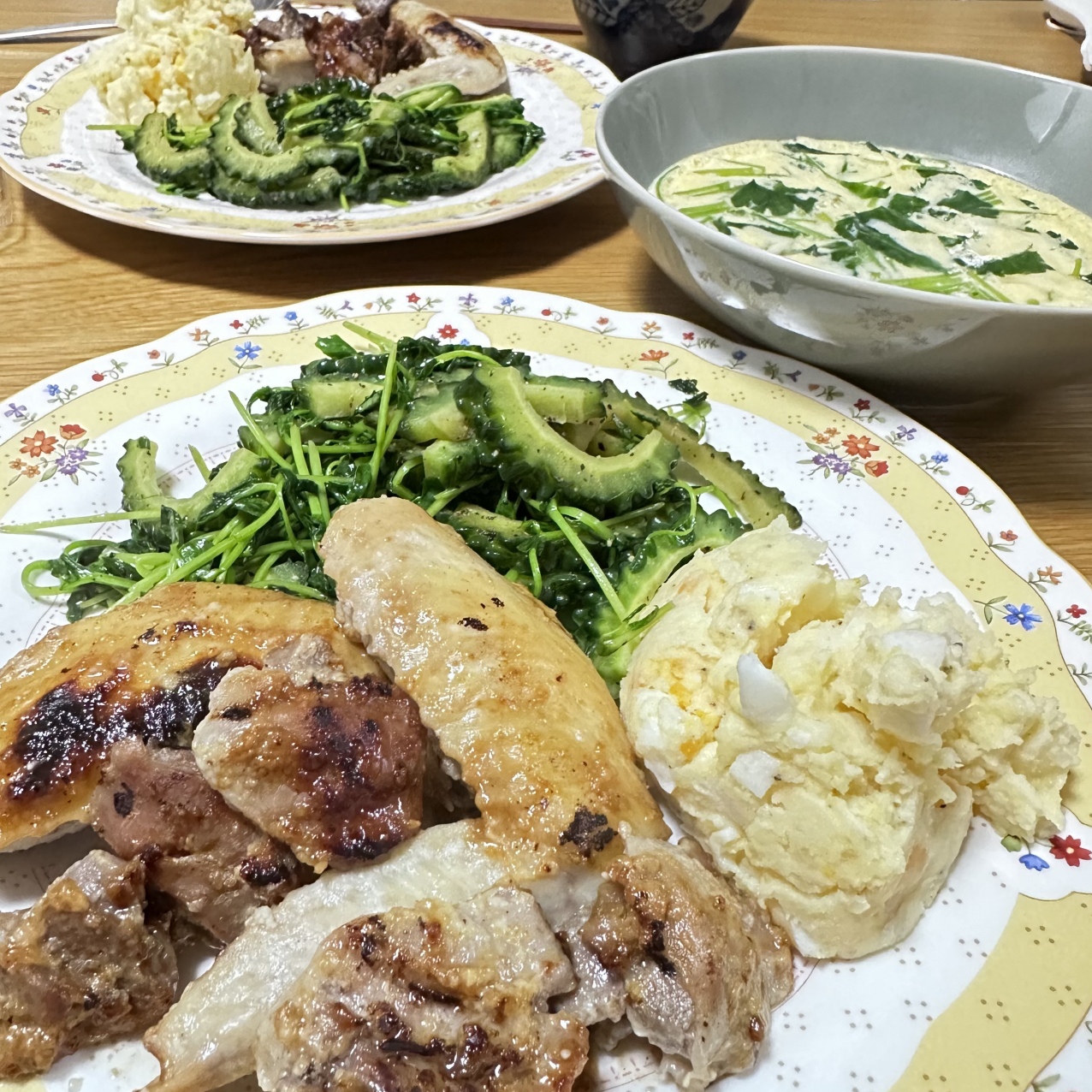 ご馳走プレートと蒸し卵